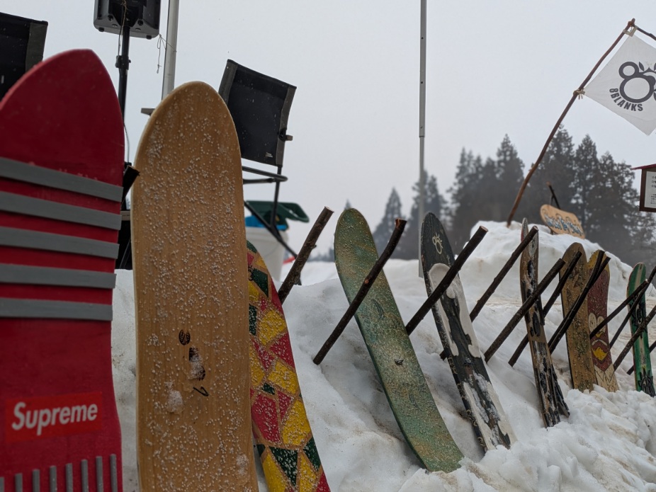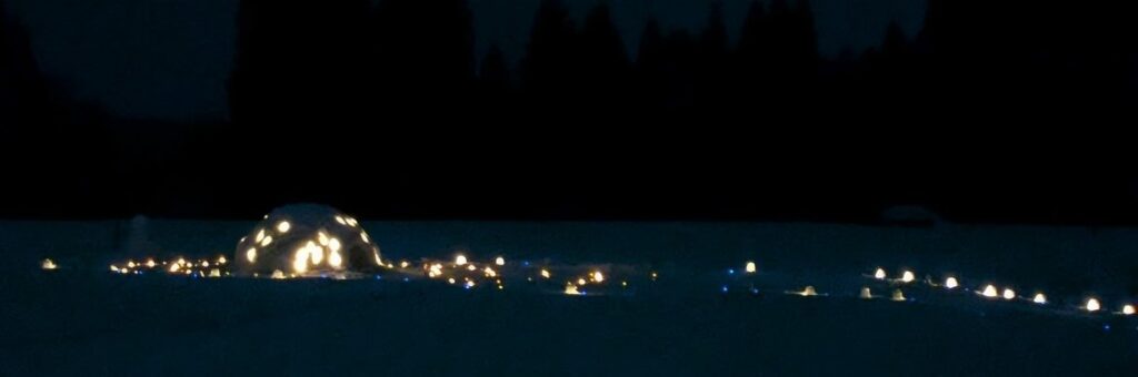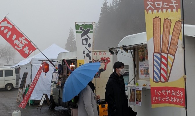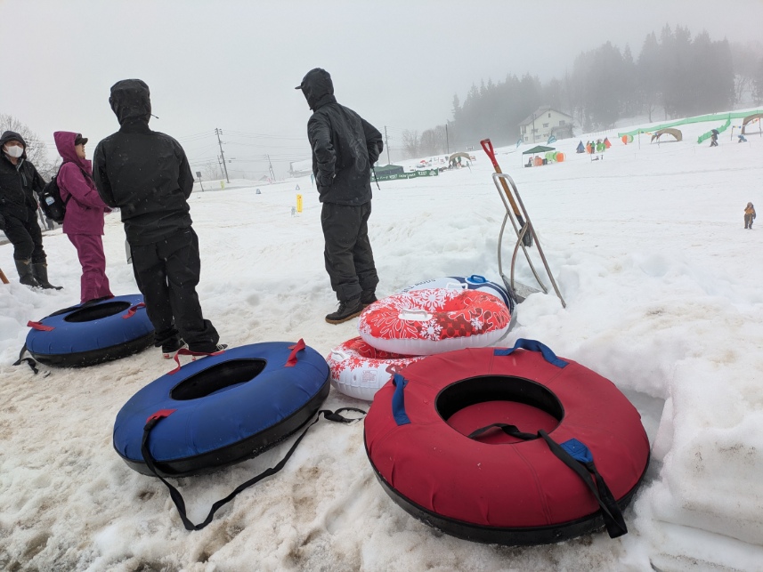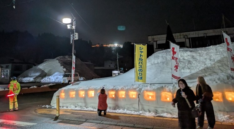 雪板体験やジャンボ滑り台にスノーモービル体験、ウエストの雪遊びエリア、そしてうまいもの屋台、さらには古民家エリアでのテントサウナや昨年川口にオープンしたばかりの川乃珈琲の出店、ホテルサンローラでは音楽ライブもあり内容が盛沢山の火ぼたる祭でした。