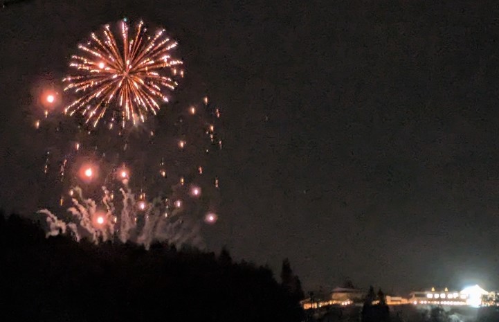 日中はあいにくの雨でしたが夕方にはあがり、冬ならではのすっきりとした夜空の中、美しい花火を見ることが出来ました。