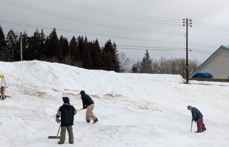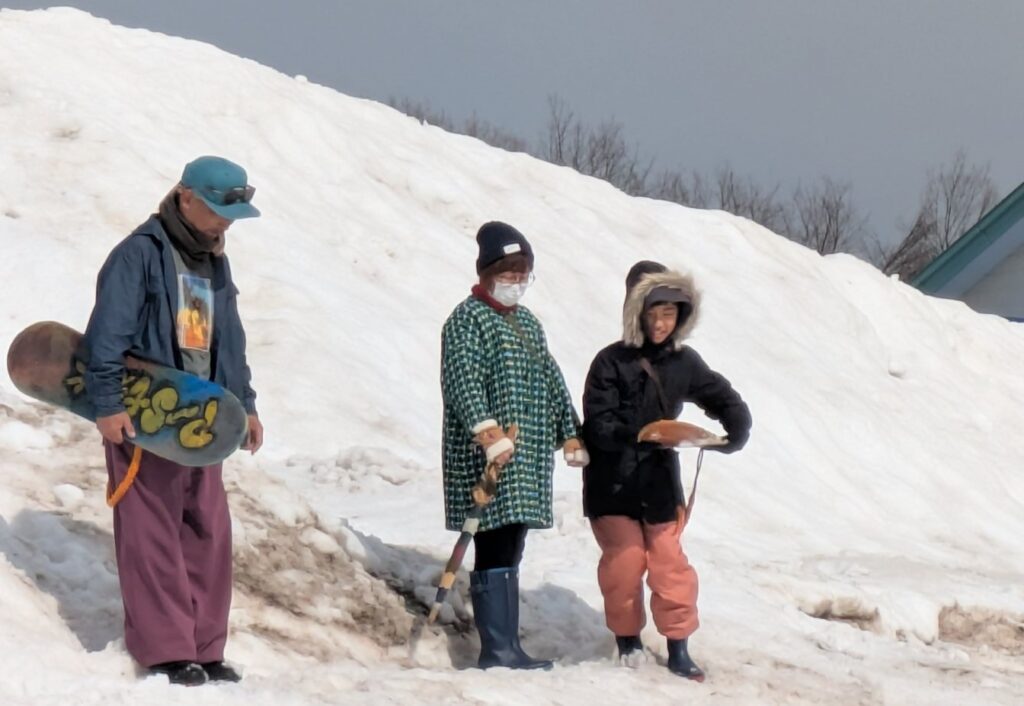 3月7日の土曜日、川口運動公園多目的広場の雪洞火ぼたる祭雪板会場跡で雪板体験が開催されました。