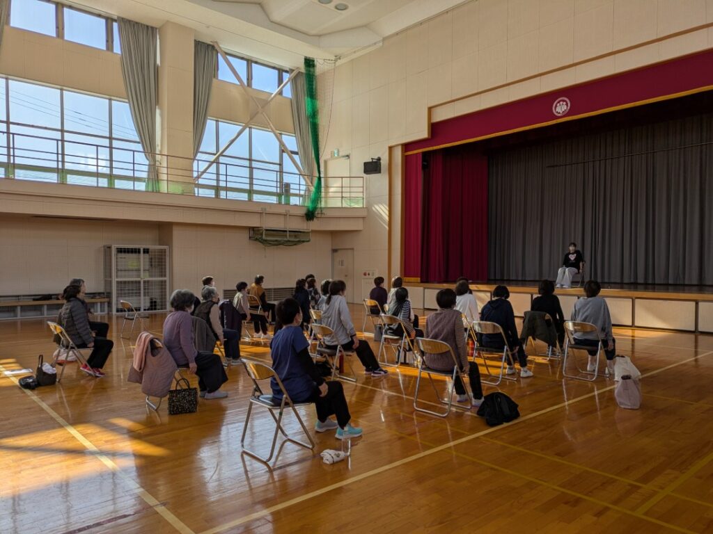 今年も藤野氏を講師にお招きし、リズム体操や正しい姿勢での歩き方、さまざまな体のほぐし方など、全24名が心地よい汗を流しました。イスに座ったままでもいろいろな体操やストレッチが出来るんですね。