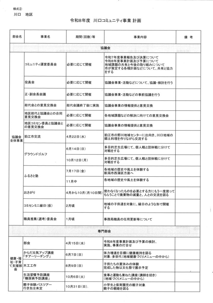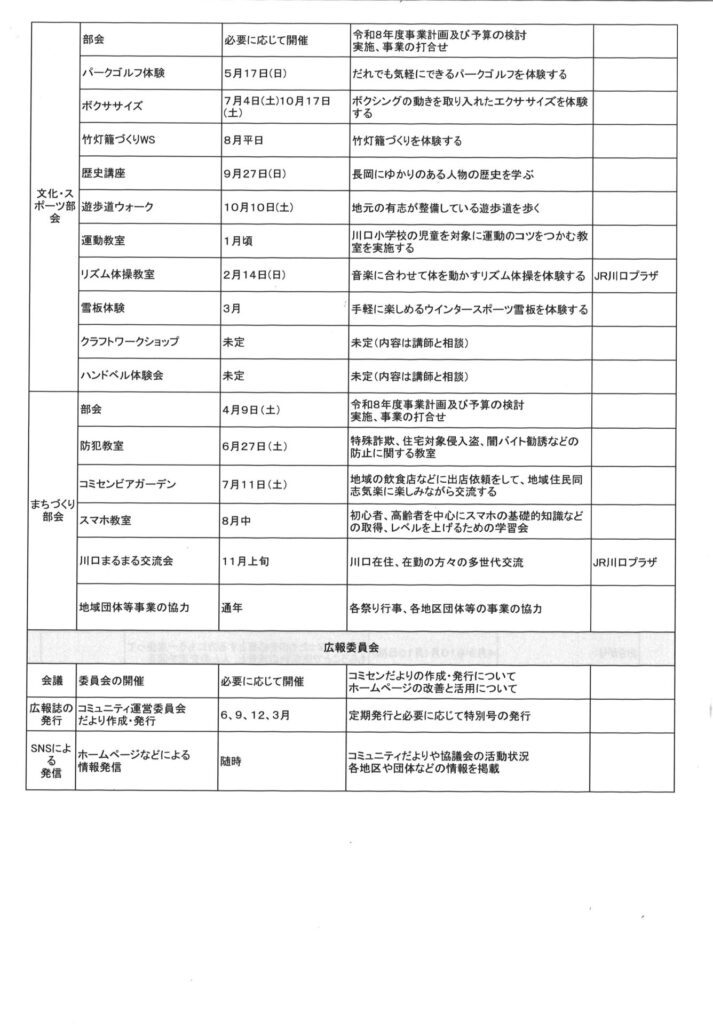 4月24日(金)に川口コミュニティ推進協議会、令和8年度第1回運営委員会が、運営委員15名中、12名の出席者で開催されました。また、川口支所長はじめ、支所担当職員の方々にも出席していただきました。議題は下記の通りです。