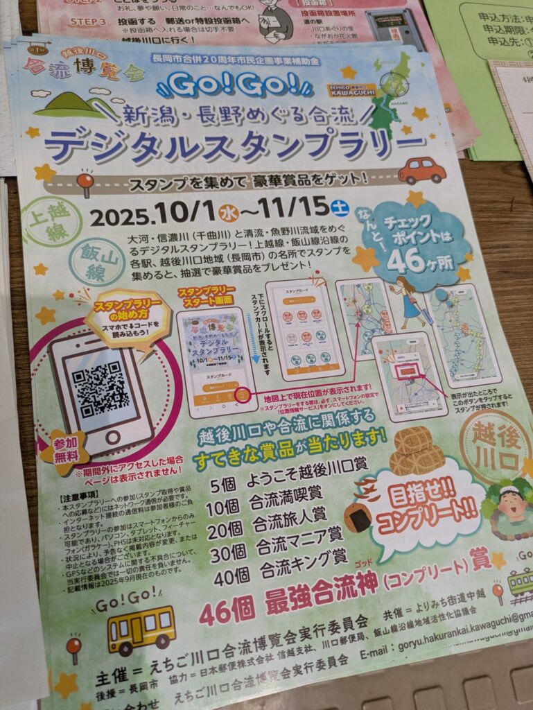 会場には信濃川(長野県に入ると千曲川)流域の様々な名産品やパンフレットが、そして越後川口や長岡の名産品の数々が所狭しと並び、さらにはカフェの出店もあるのだとか。
