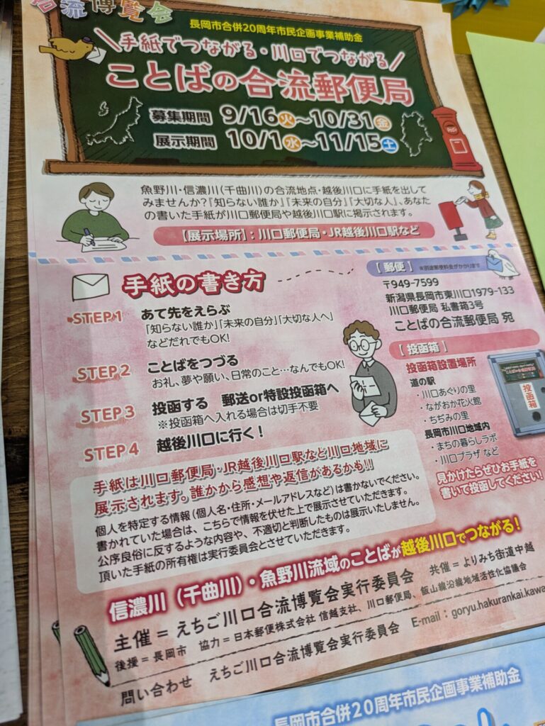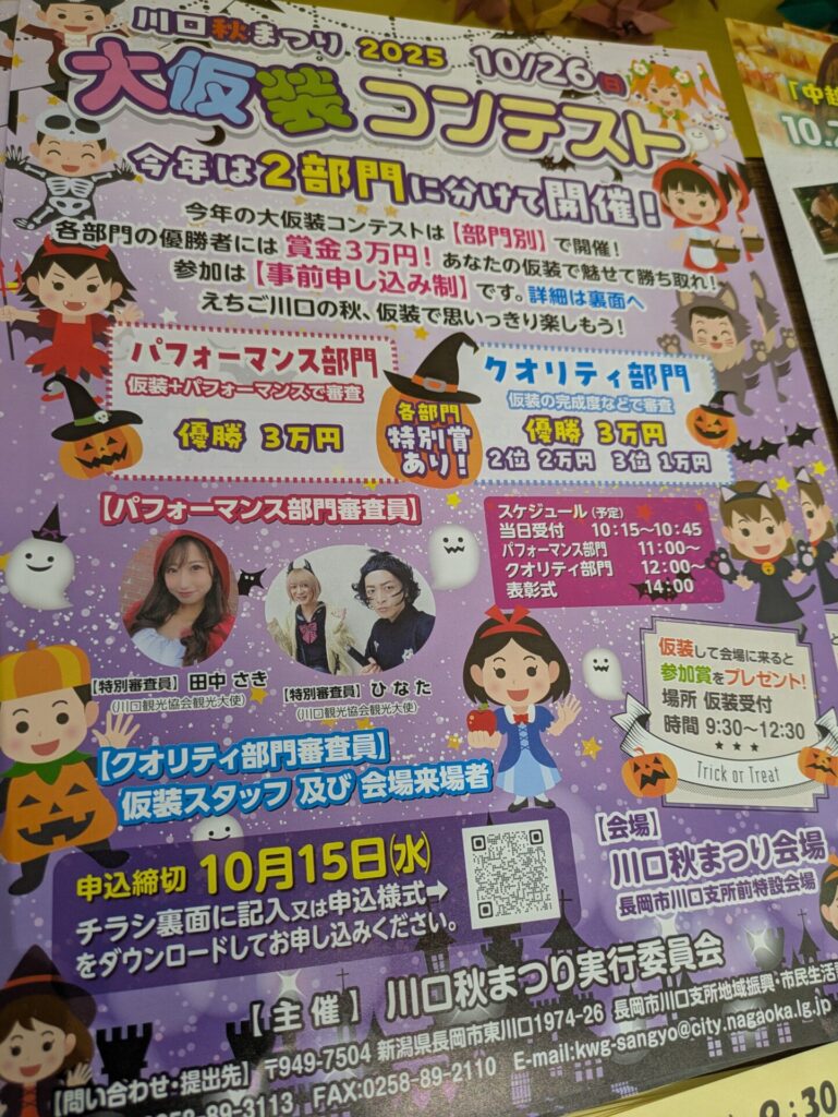 なんと川口秋まつりと同日開催で、場所は秋まつり会場になっている長岡市川口支所前駐車場の道を挟んで反対側「越後川口まちの暮らしラボ(旧大光銀行越後川口支店)」