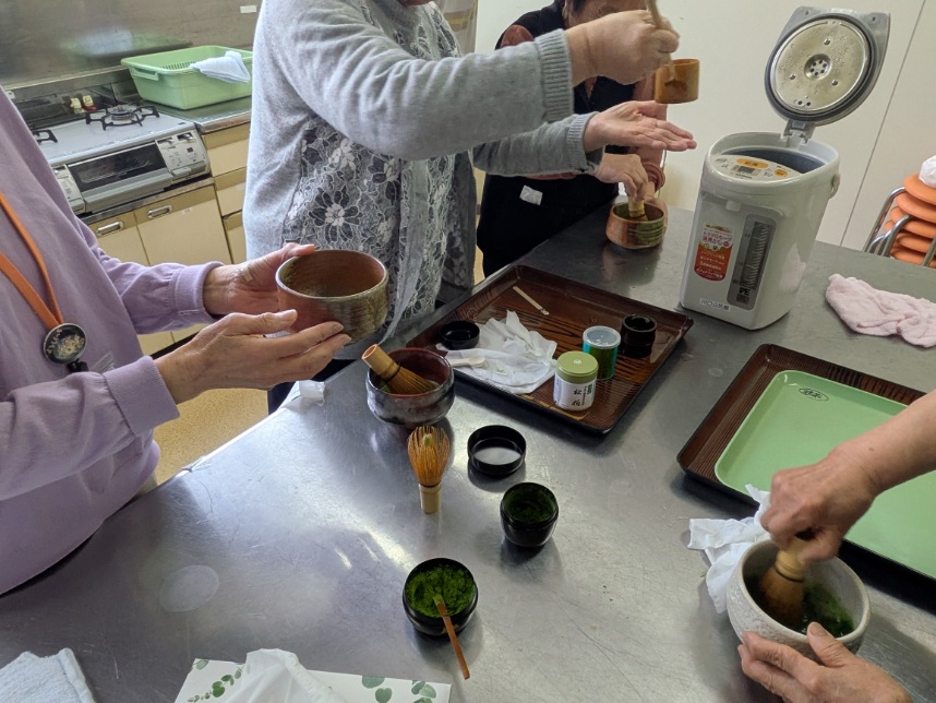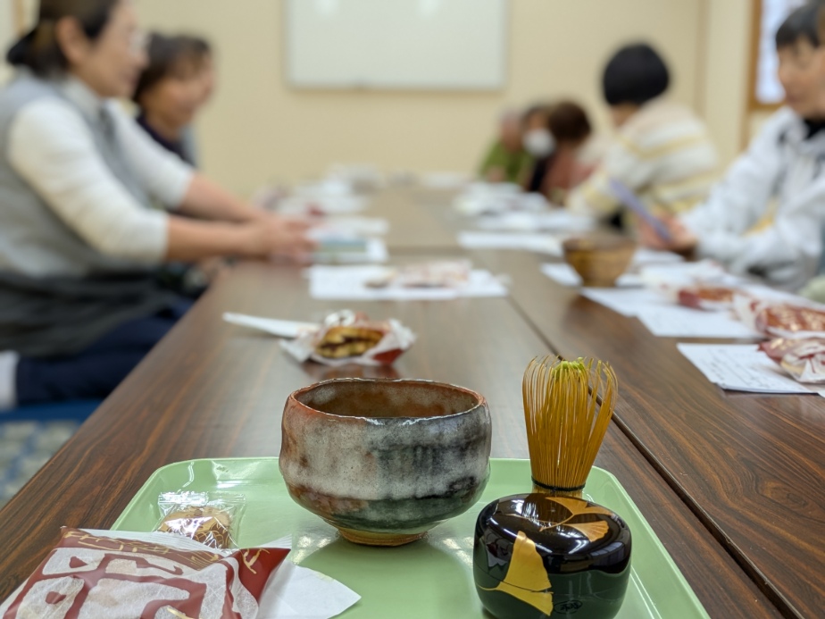 筋肉のための運動などさまざまな企画を楽しんでいる「貯筋クラブ」ですが、この日はなんと「お茶会」で「お茶をたててみよう」とのことでした。(運動以外の企画もあるんですね!)コミセンブログ担当もお声かけいただいたので せっかくの機会だからと写真を撮ってみました。貯筋クラブの皆様ありがとうございました。