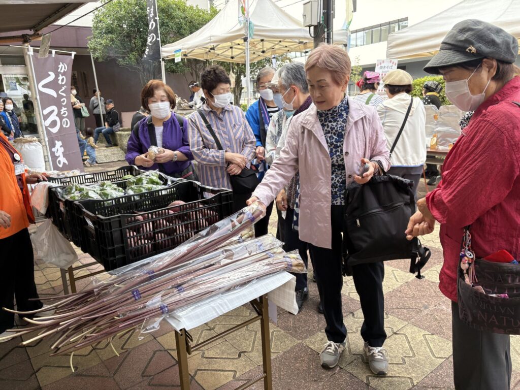 10月12日(日)に上和泉地域センターまつりが開催されました。川口産のお米や野菜などを販売。中でもズイキが大人気で販売前から行列ができるほど…今回初めてお饅頭を販売したが、これもまた人気!持参した物はすべて完売でした!他にも山梨県小菅村からは、ヤマメの塩焼きやマコモダケの販売。地元からは、焼きそばや手で作り雑貨にパンなども出店。残念ながらステージ発表は見れませんでしたが9月に行われた、寄り合いっ子で顔見知りになった方とも再会することができました。狛江市の皆さんが川口産の物を楽しみに待っているようでした。