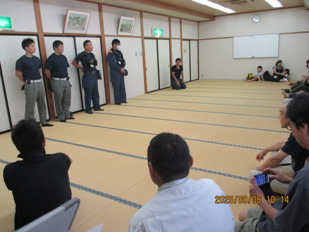 9月6日(土)にまちづくり部会主催の「防災教室」が、小千谷市消防署川口出張所の職員を講師に迎え、コミセンで行われました。最初に住宅用火災警報器設置の説明や、火災時の対処の仕方などを聞いた後、いよいよ煙体験です。
