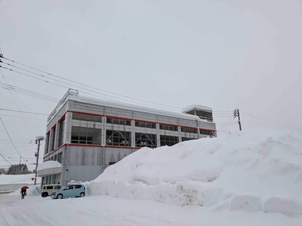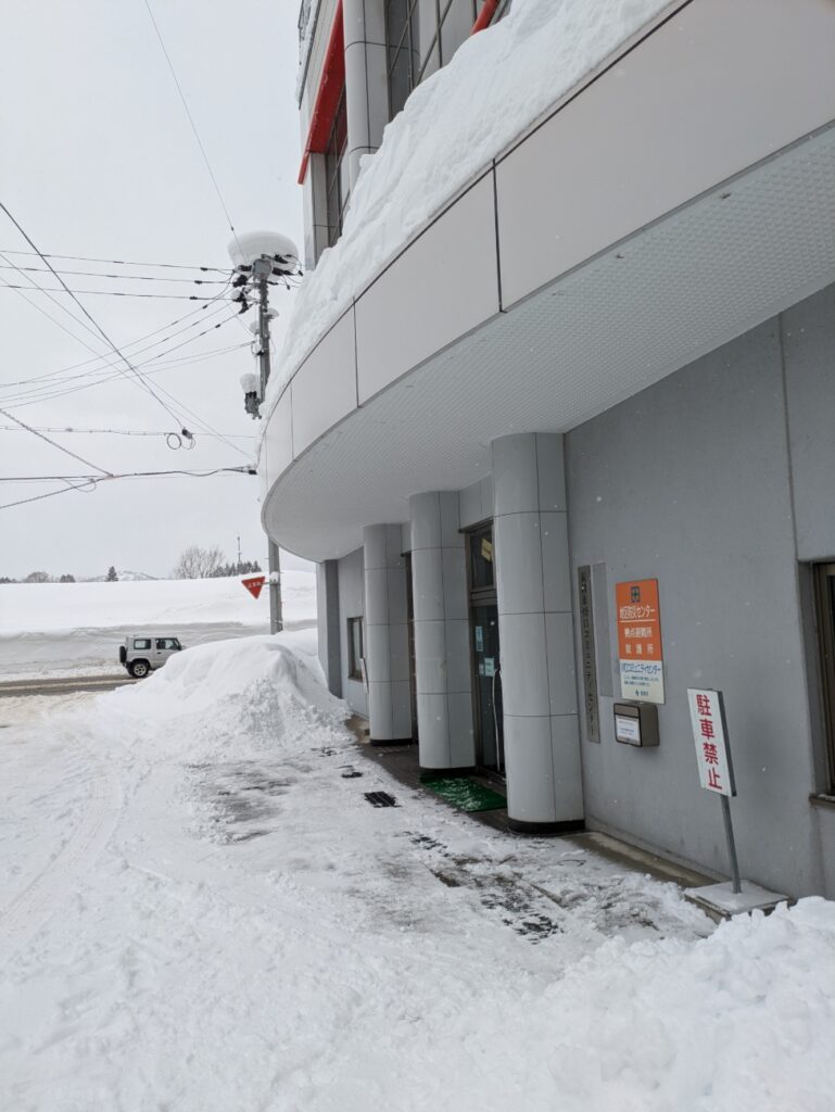 道路除雪の雪山で駐車スペースが狭くなっています。コミセンにお越しの際は、乗り合わせるなどご協力お願いします。