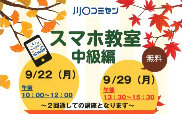 初級編に引き続き、今回は中級編を学習します。2回を通しての講座となっており、9月22日(月)が10:00~12:00、9月29日(月)が13:30~15:30の時間帯で行います。