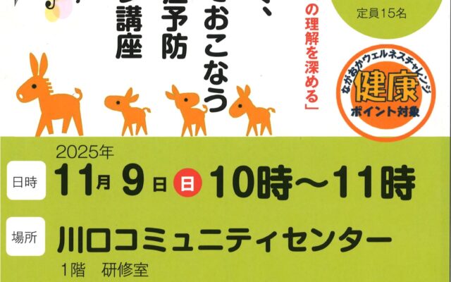 11月9日(日)午前10時~11時 コミセン研修室で講師(佐々木理恵子さん)を招いて、音楽を取り入れた楽しい認知症予防と脳トレを行います。家族、お友達を誘って参加しませんか!
