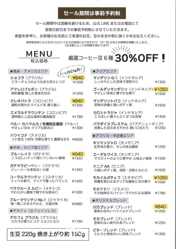 連絡先 | Coffee Roast 川乃珈琲 TEL: |